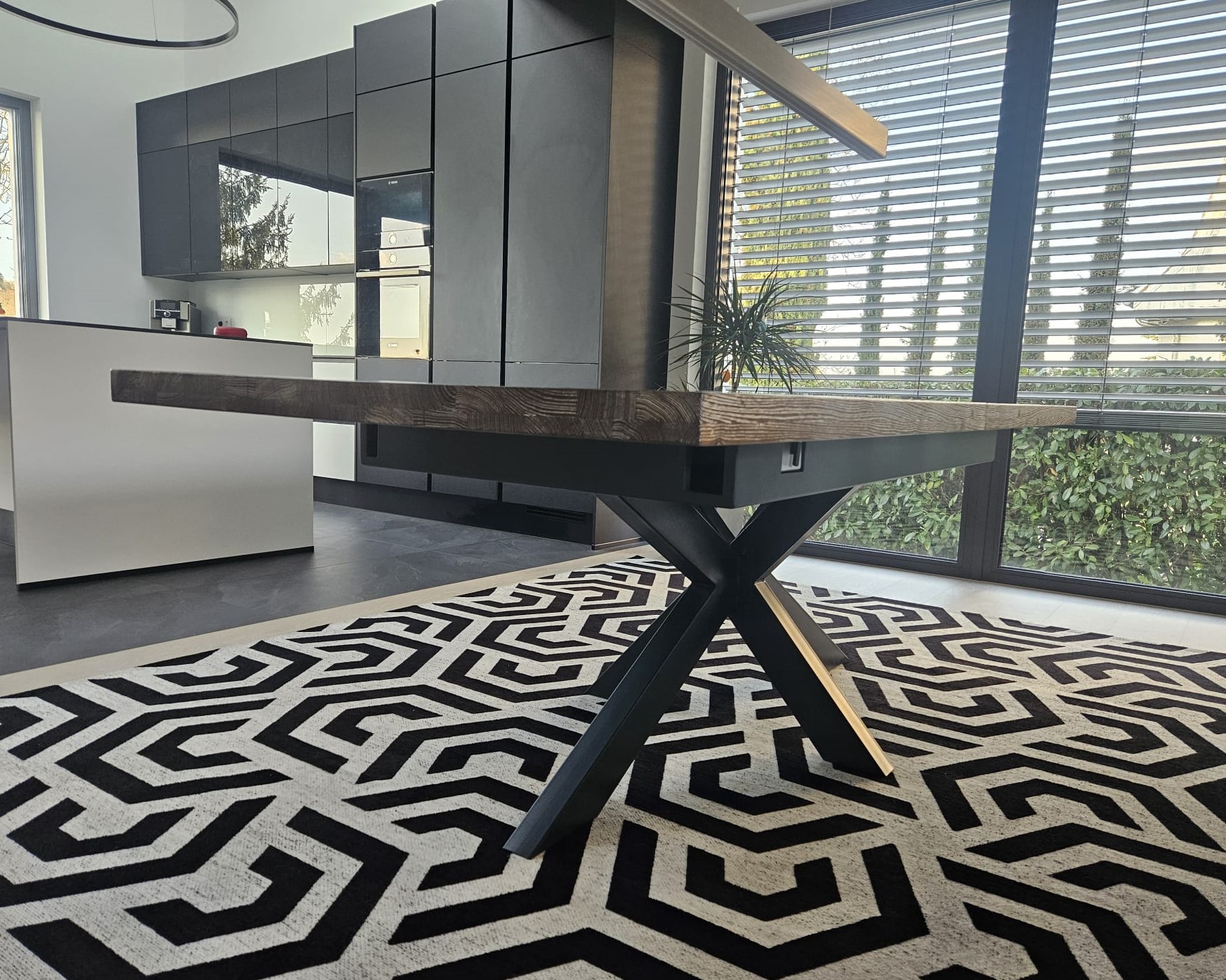 Das elegante Spider-Gestell in Anthrazit sorgt nicht nur für eine stabile Basis, sondern setzt auch einen modernen Akzent. Zusammen entsteht ein langlebiges, stilvolles Möbelstück, das den Essbereich zu einem Ort der Begegnung und des Genusses macht.