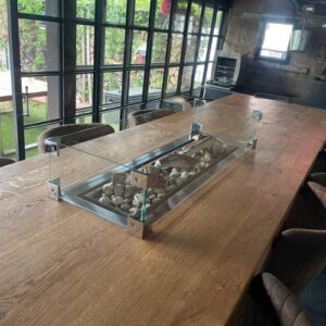 Tisch mit integriertem Flaschenkühler & austauschbarem Tischkamin